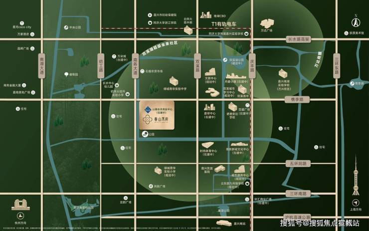 项目择址嘉兴双溪湖板块超级未来社区核心,双溪湖超级未来社区作为国际商务开放枢纽示范区的重要功能单元,规划总面积约5.3平方公里,重点打造“1园7中心”,是以SOD+模式打造嘉兴创新、生态、共享的微型城市样板.